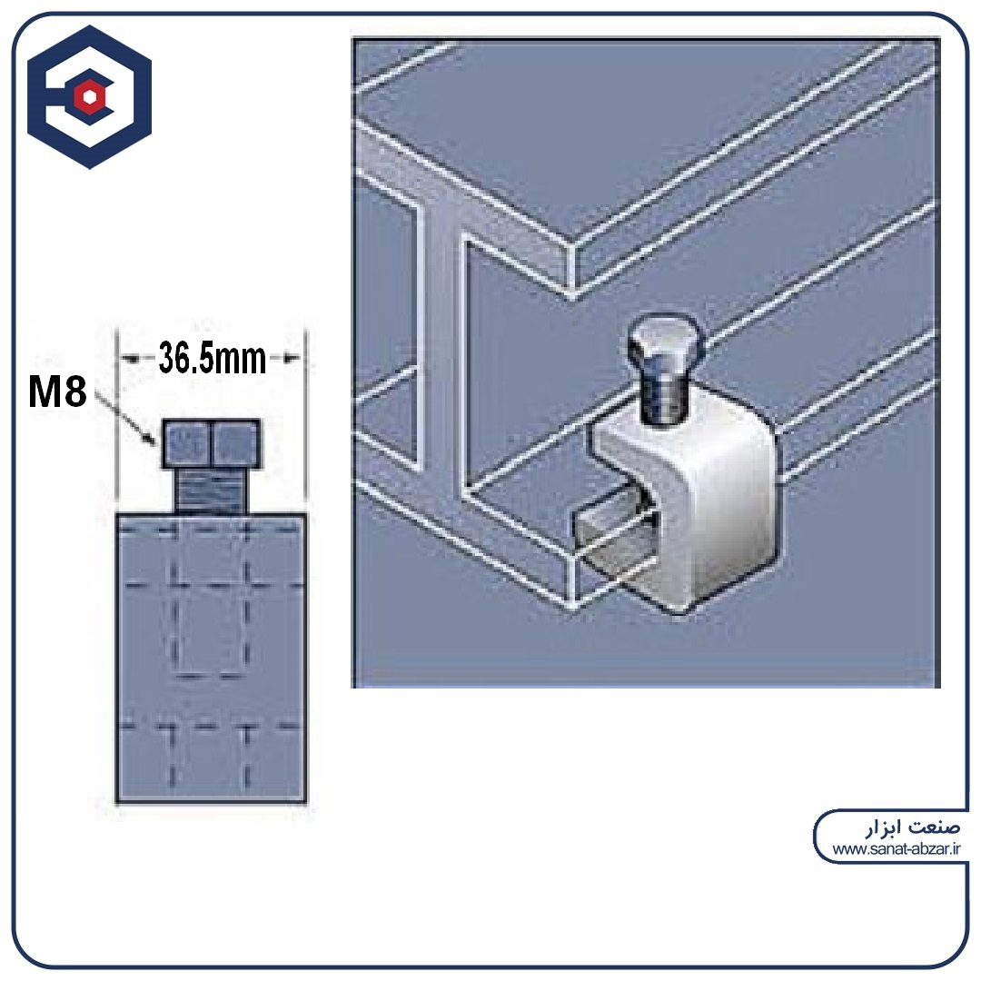 سی کلمپ / بیم کلمپ فشار قوی برای نصب سریع و بدون جوشکاری تجهیزات به بال تسمه ،تیرآهن ،نبشی ، ناودانی و... و همچنین بعنوان نگهدارنده و فیکس کننده با استحکام بالا کاربرد دارد و پوشش گالوانیزه از نوع سرد و گرم طول عمر این قطعه را در برابر شرایط جوی و رطوبتی محافظت نموده و ار زنگ زدگی و خوردکی جلوگیری مینماید .